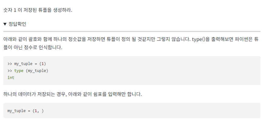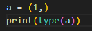 기억하기 ! _ 숫자1이 저장된 튜를을 생성 하려면.... ( , 중요 !)