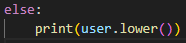 if 조건이 거짓인 경우, 즉 user 변수의 문자열에 대문자가 포함되어 있거나, 문자열이 비어 있거나, 숫자나 특수 문자만 포함되어 있는 경우에 실행됩니다. 이 때 lower() 메서드를 사용하여 문자열의 모든 글자를 소문자로 변환하고 출력합니다.