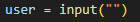 이 줄은 사용자로부터 입력을 받아 user 변수에 저장합니다. input() 함수의 인자로 빈 문자열 ""이 주어져 있어서, 사용자에게 별도의 입력 안내 메시지는 표시되지 않습니다.